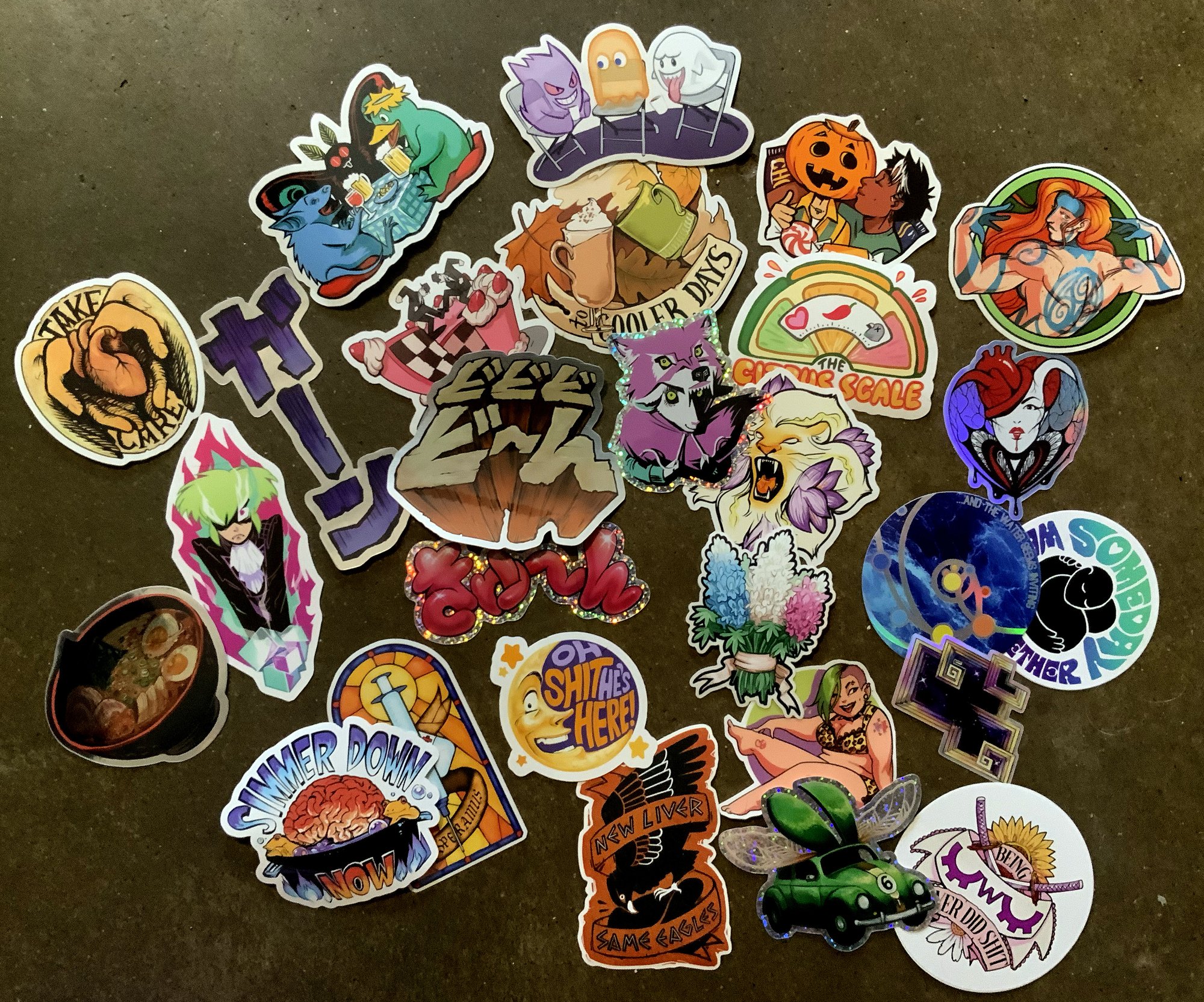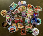 10 different stickers chosen at random from a myriad of designs! All stickers are printed with UV-resistant coating on high quality vinyl.