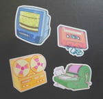 Stickers are $4 each or get the complete set of 12 for $30. Stickers are between 2.5" and 3" wide, die-cut, printed on transparent vinyl.